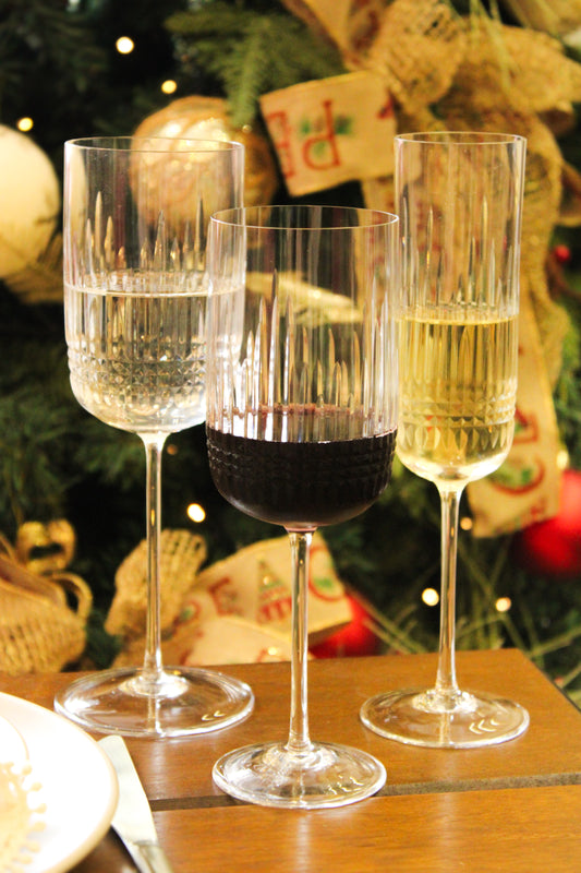 Os vinhos tintos revelam sua complexidade quando servidos em taças de cristal adequadas. Com formas elegantes e cristal de alta pureza, nossas taças realçam corpo, aroma e profundidade.